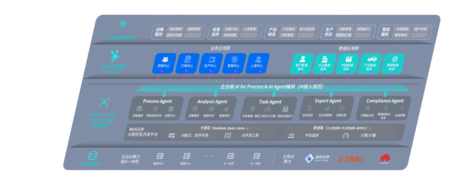 KU娱乐问学智车解决方案是一套基于AI技术的汽车行业智能化系统,,覆盖从底层算力到顶层AI应用的全栈方案。。方案由算力层、、、、模型层和应用层组成:算力层,,,方案支持多种一体机配置,,,具备云端灵活部署、、多云适配以及动态优化计算资源的能力;模型层,,KU娱乐问学平台版提供了企业级AI应用一站式构建与管理平台,,支持基于后训练强化技术的汽车企业专属模型的训练、、、评测和运营;应用层,,KU娱乐问学DeepSeek版提供包括超级员工、、、、智能招采、、、智能营销、、智能客服、、、、AI for BI等一系列解决方案,,可助力汽车行业实现数字化转型,,,,让管理更智能、、、响应更敏捷。。。。